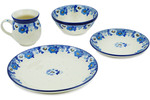 A: Dinner plate is 10 1/2" in diameter, dessert plate 7 3/4", bubble mug 4" x 4" x 5½" 15.99 oz, bowl 2¾" x 6½" x 6½" 24.01 oz.