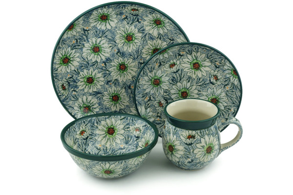 • Polish Pottery 4-Piece Place Setting Morning Frost UNIKAT