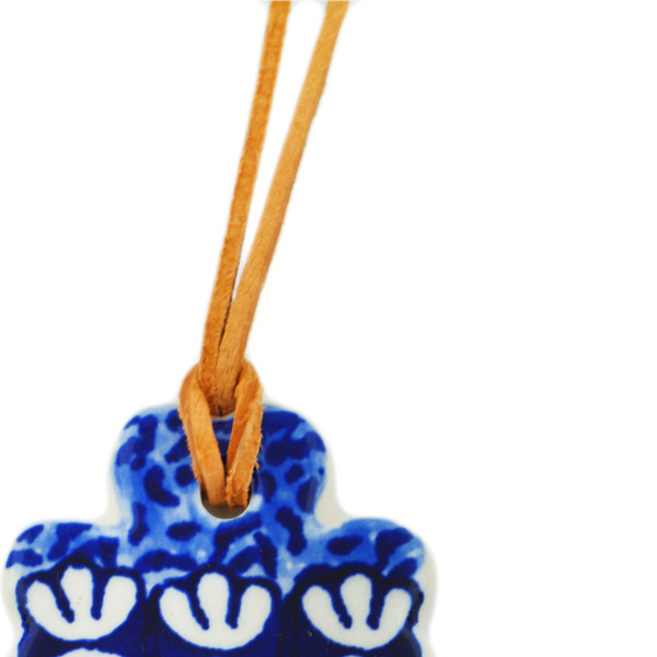 This polish pottery necklace (item number H2190N) is made by talented artisans from Poland. It is 0.2" high and measures 1.7" by 29.5". The weight of this necklace is 0.05 lbs.