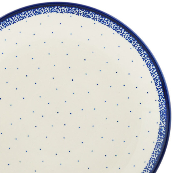 This polish pottery plate (item number H2208F) is made by talented artisans from Poland. It is 1.6" high and measures 10.6" by 10.6". The weight of this plate is 2.34 lbs.