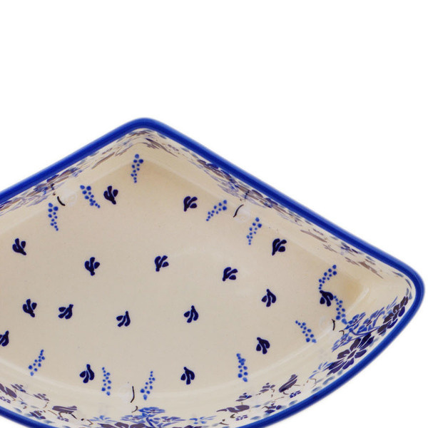 This polish pottery bowl (item number H2721R) is made by talented artisans from Poland. It is 2.2" high and measures 5.1" by 8.5". It holds 18 ounces of fluid. The weight of this bowl is 1.17 lbs.