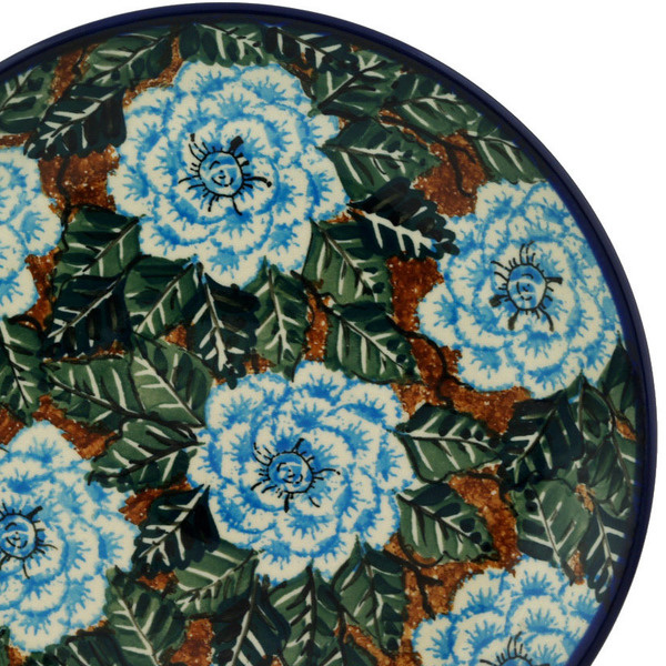 This polish pottery plate (item number H8838C) is made by talented artisans from Poland. It is 1.2" high and measures 7.9" by 7.9". The weight of this plate is 1.04 lbs.