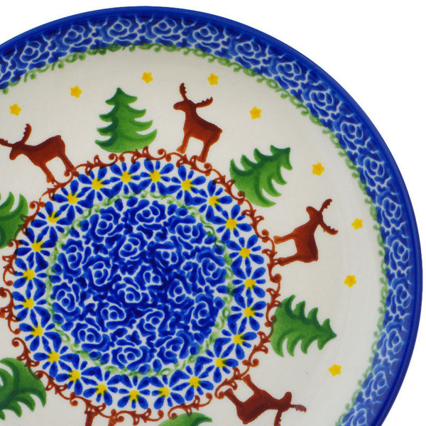 This polish pottery plate (item number H3358P) is made by talented artisans from Poland. It is 1" high and measures 7.6" by 7.6". The weight of this plate is 0.85 lbs.