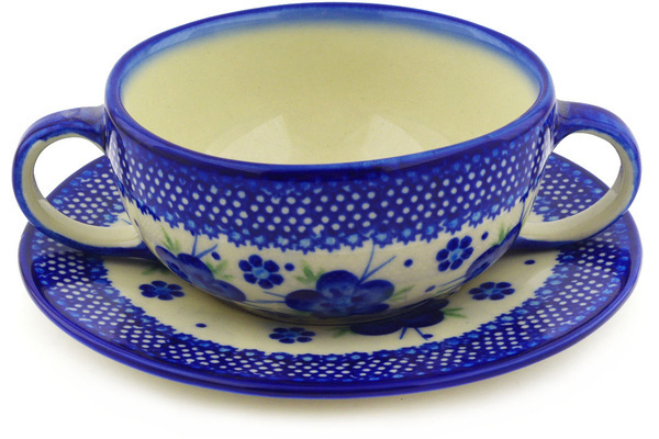 This polish pottery bouillon cup with saucer (item number H5089F)