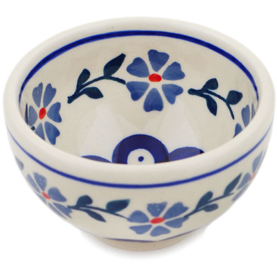 This polish pottery bowl (item number H8977P) is made by talented artisans from Poland. It is 2.1" high and measures 3.4" by 3.4". It holds 5 ounces of fluid. The weight of this bowl is 0.34 lbs.