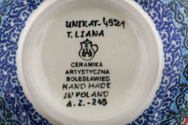 This is Polish Pottery Unikat (Signature) bowl, which means that it has been hand painted with both sponges and brushes and it is signed by the artist who painted it. Unikat pieces are the most involving works of art. Larger Unikat items take a few hours of very careful work to finish.