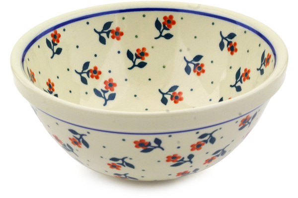 • Polish Pottery Bowl 7" Sweet Red Flower