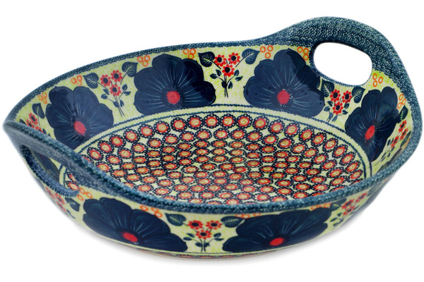 This Polish pottery bowl with handles is currently out of stock in our Texas warehouse. However, we can special order it from Boleslawiec if you're willing to wait 6-12 months.