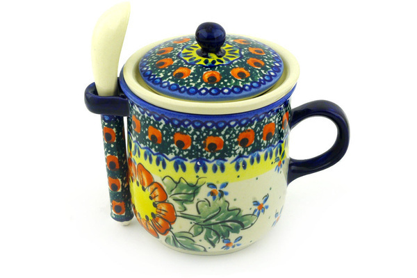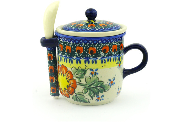 This Polish pottery brewing mug with spoon is currently out of stock in our Texas warehouse. However, we can special order it from Boleslawiec if you're willing to wait 6-12 months.
