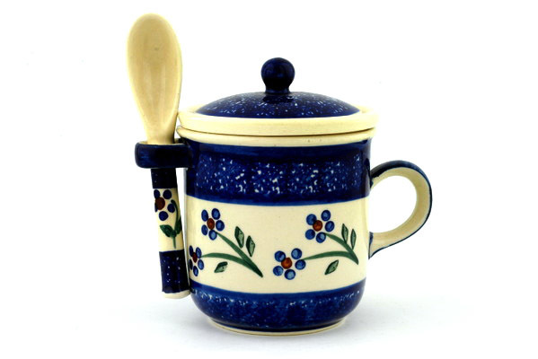 This Polish pottery brewing mug with spoon is currently out of stock in our Texas warehouse. However, we can special order it from Boleslawiec if you're willing to wait 6-12 months.