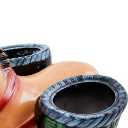 This clay chicken figurine (item number H3489N) is made by talented artisans from Poland. It is 7.6" high and measures 5.4" by 9.8". The weight of this chicken figurine is 3.24 lbs.