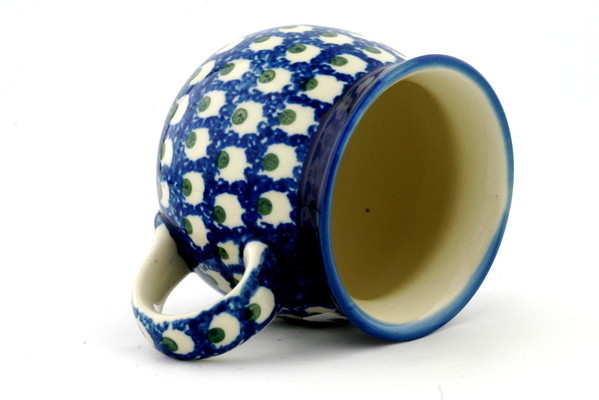 This polish pottery bubble mug (item number H8882A) is made by talented artisans from Poland. It is 3.8" high and measures 3.7" by 5". It holds 12 ounces of fluid. The weight of this bubble mug is 0.82 lbs. The price of this bubble mug is $30.95 and if your total is over $99 you will get FREE SHIPPING.