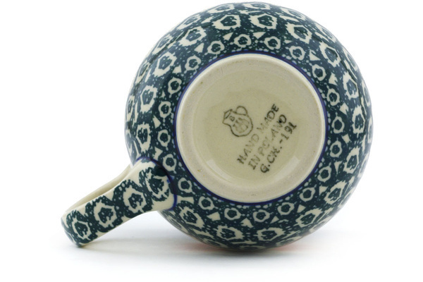 This polish pottery bubble mug (item number H1461H) is made by talented artisans from Poland. It is 3.8" high and measures 3.7" by 5". It holds 12 ounces of fluid. The weight of this bubble mug is 0.82 lbs. The price of this bubble mug is $47.95 and if your total is over $99 you will get FREE SHIPPING.