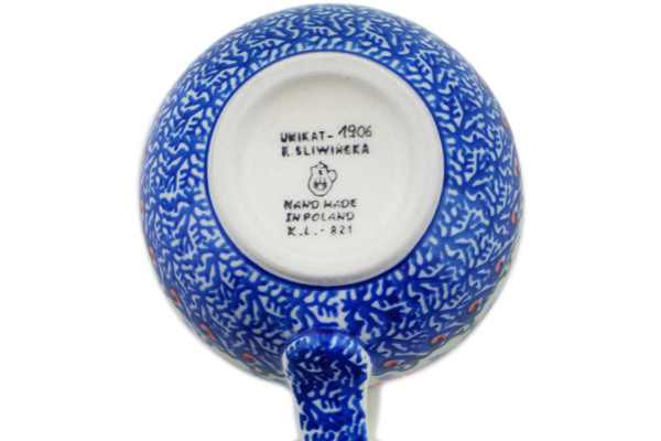 This is Polish Pottery Unikat (Signature) bubble mug, which means that it has been hand painted with both sponges and brushes and it is signed by the artist who painted it. Unikat pieces are the most involving works of art. Larger Unikat items take a few hours of very careful work to finish.