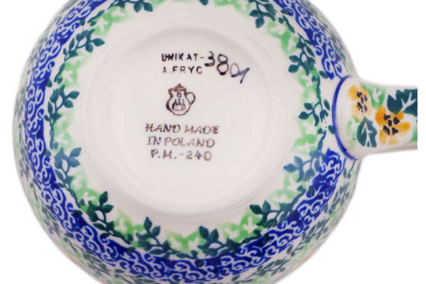 This is Polish Pottery Unikat (Signature) bubble mug, which means that it has been hand painted with both sponges and brushes and it is signed by the artist who painted it. Unikat pieces are the most involving works of art. Larger Unikat items take a few hours of very careful work to finish.