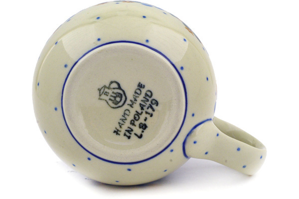 This polish pottery bubble mug (item number H2033E) is made by talented artisans from Poland. It is 3.2" high and measures 3.2" by 4.3". It holds 8 ounces of fluid. The weight of this bubble mug is 0.52 lbs. The price of this bubble mug is $35.95 and if your total is over $99 you will get FREE SHIPPING.
