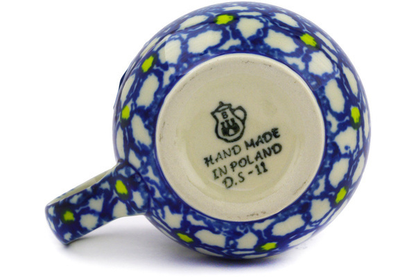 This polish pottery bubble mug (item number H2041E) is made by talented artisans from Poland. It is 3.2" high and measures 3.2" by 4.3". It holds 8 ounces of fluid. The weight of this bubble mug is 0.52 lbs. The price of this bubble mug is $32.95 and if your total is over $99 you will get FREE SHIPPING.