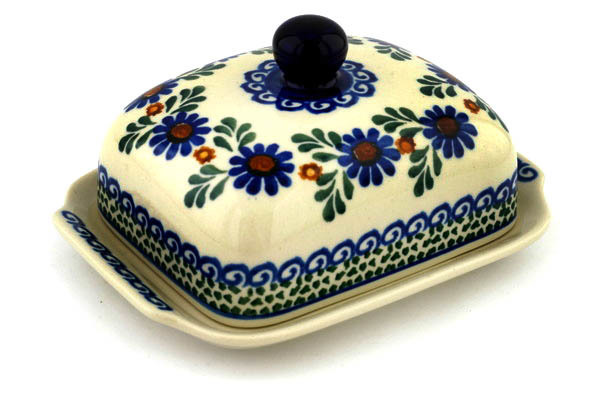 • Polish Pottery Butter Dish 7" Daisy Crown