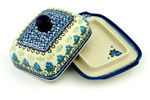 A: This butter dish fits the European style of butter block, which is more rectangular than American style butter sticks. This dish fits at most a dimension of approximately 5½" x 4" x 2".