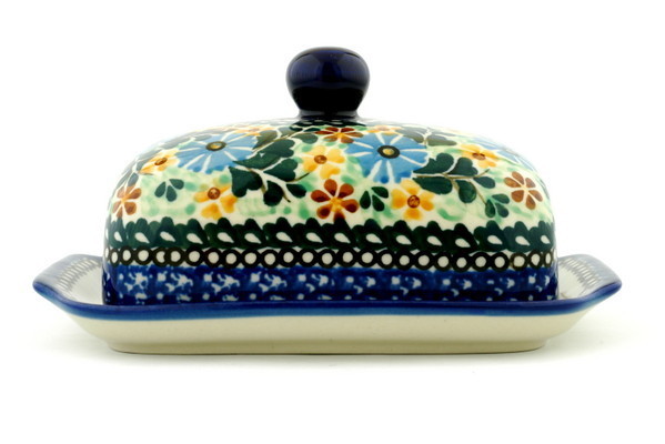 • Polish Pottery Butter Dish 7" Tranquility UNIKAT