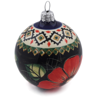 This polish pottery christmas ball ornament (item number H6055K) is made by talented artisans from Poland. It is 3.9" high and measures 3.2" by 3.2". The weight of this christmas ball ornament is 0.23 lbs.