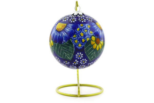 This polish pottery christmas ball with stand ornament (item number H1678F)