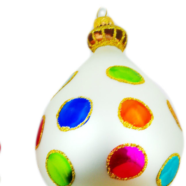 This glass christmas ball ornament (item number H5861N) is made by talented artisans from Poland. It is 5.9" high and measures 3.2" by 3.2". The weight of this christmas ball ornament is 0.06 lbs.