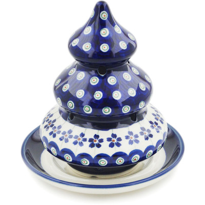 This polish pottery christmas tree candle holder (item number H5888D) is made by talented artisans from Poland. It is 6.5" high and measures 5.7" by 5.7". The weight of this christmas tree candle holder is 1.37 lbs.