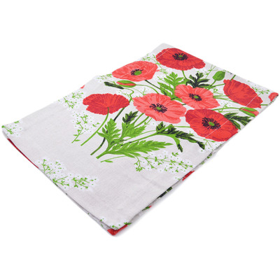 This textile cloth table runner (item number H2503N) is made by talented artisans from Poland. It is 0.1" high and measures 13.8" by 42.5". The weight of this cloth table runner is 0.33 lbs.