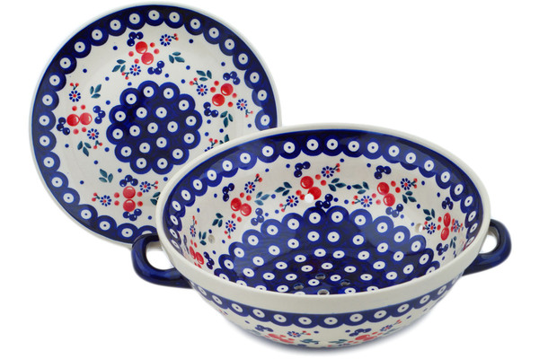 This polish pottery colander with plate (item number H6498O)