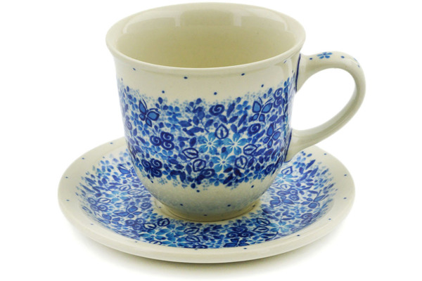 Unikat (Signature) cup with saucer, which means that it has been hand painted with both sponges and brushes and it