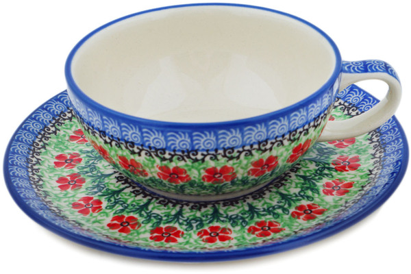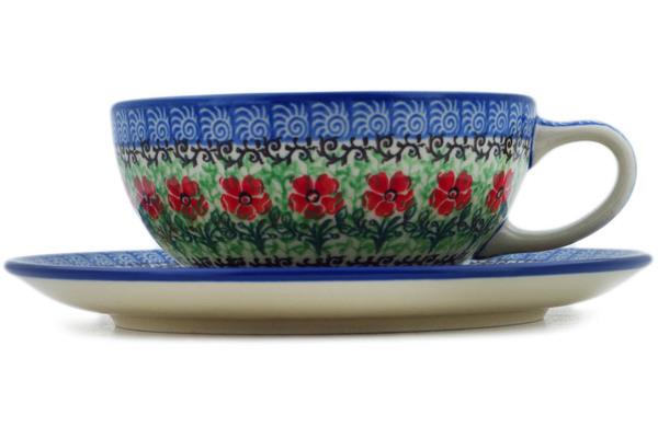 This Polish pottery cup with saucer is currently out of stock in our Texas warehouse. However, we can special order it from Boleslawiec if you're willing to wait 6-12 months.