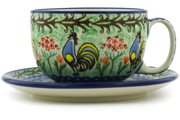 This polish pottery cup with saucer (item number H9131G)