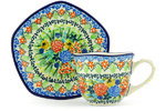 This polish pottery cup with saucer (item number H4177G)