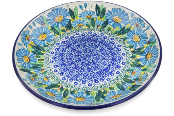 • Polish Pottery Dinner Plate 10½-inch Blue Daisy UNIKAT