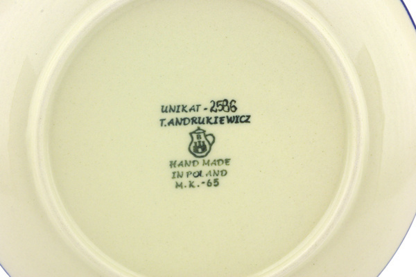 This is Polish Pottery Unikat (Signature) plate, which means that it has been hand painted with both sponges and brushes and it is signed by the artist who painted it. Unikat pieces are the most involving works of art. Larger Unikat items take a few hours of very careful work to finish.