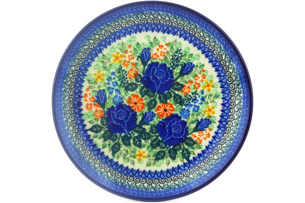 • Polish Pottery Plate 8" Peacock Forget-me-not