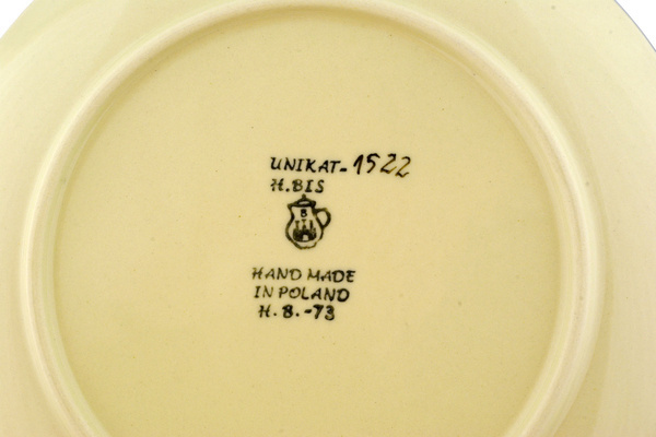 This is Polish Pottery Unikat (Signature) plate, which means that it has been hand painted with both sponges and brushes and it is signed by the artist who painted it. Unikat pieces are the most involving works of art. Larger Unikat items take a few hours of very careful work to finish.