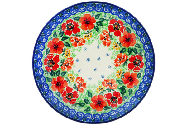 • Polish Pottery Plate 10" Candy Red Poppy UNIKAT