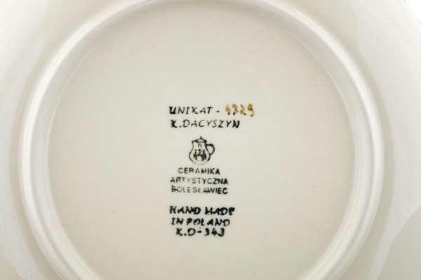 This is Polish Pottery Unikat (Signature) plate, which means that it has been hand painted with both sponges and brushes and it is signed by the artist who painted it. Unikat pieces are the most involving works of art. Larger Unikat items take a few hours of very careful work to finish.