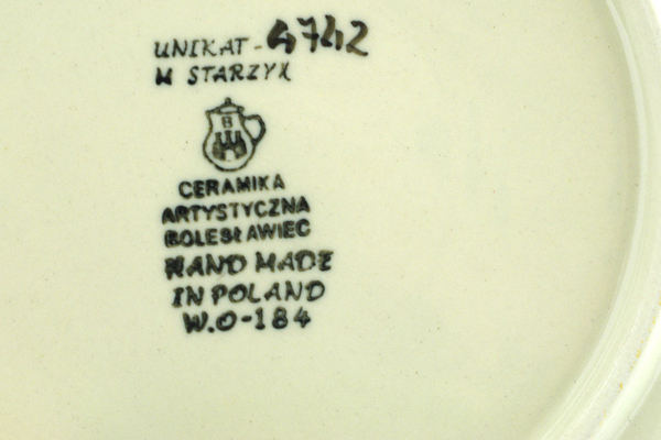 This is Polish Pottery Unikat (Signature) plate, which means that it has been hand painted with both sponges and brushes and it is signed by the artist who painted it. Unikat pieces are the most involving works of art. Larger Unikat items take a few hours of very careful work to finish.