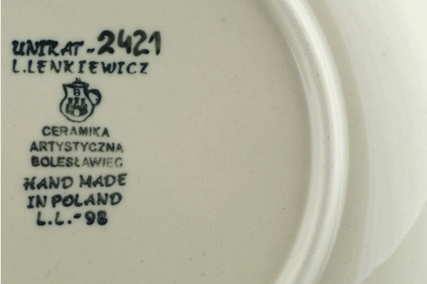 This is Polish Pottery Unikat (Signature) plate, which means that it has been hand painted with both sponges and brushes and it is signed by the artist who painted it. Unikat pieces are the most involving works of art. Larger Unikat items take a few hours of very careful work to finish.