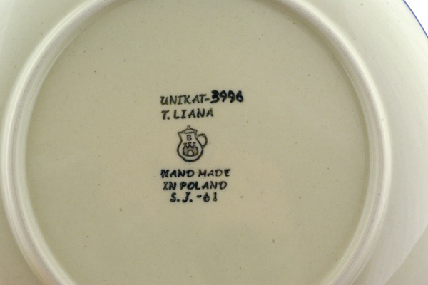 This is Polish Pottery Unikat (Signature) plate, which means that it has been hand painted with both sponges and brushes and it is signed by the artist who painted it. Unikat pieces are the most involving works of art. Larger Unikat items take a few hours of very careful work to finish.