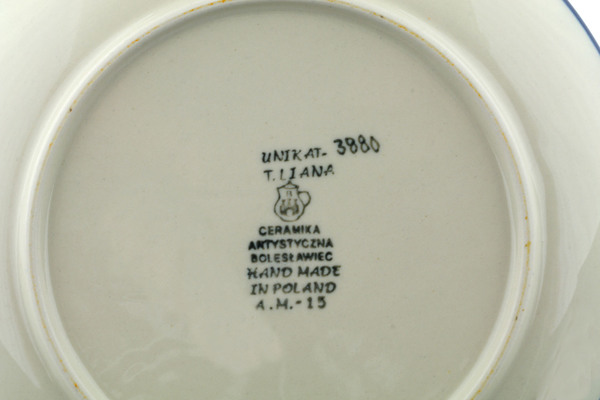 This is Polish Pottery Unikat (Signature) plate, which means that it has been hand painted with both sponges and brushes and it is signed by the artist who painted it. Unikat pieces are the most involving works of art. Larger Unikat items take a few hours of very careful work to finish.