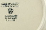 This is Polish Pottery Unikat (Signature) plate, which means that it has been hand painted with both sponges and brushes and it is signed by the artist who painted it. Unikat pieces are the most involving works of art. Larger Unikat items take a few hours of very careful work to finish.