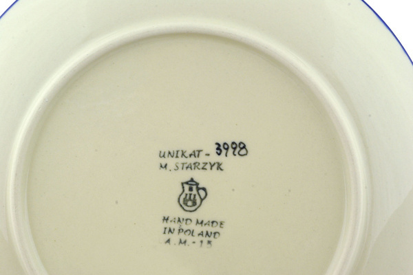 This is Polish Pottery Unikat (Signature) plate, which means that it has been hand painted with both sponges and brushes and it is signed by the artist who painted it. Unikat pieces are the most involving works of art. Larger Unikat items take a few hours of very careful work to finish.