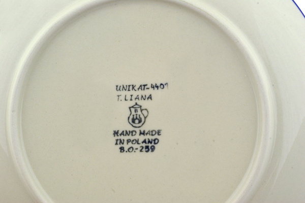 This is Polish Pottery Unikat (Signature) plate, which means that it has been hand painted with both sponges and brushes and it is signed by the artist who painted it. Unikat pieces are the most involving works of art. Larger Unikat items take a few hours of very careful work to finish.