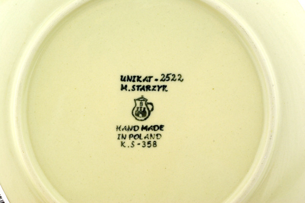 This is Polish Pottery Unikat (Signature) plate, which means that it has been hand painted with both sponges and brushes and it is signed by the artist who painted it. Unikat pieces are the most involving works of art. Larger Unikat items take a few hours of very careful work to finish.