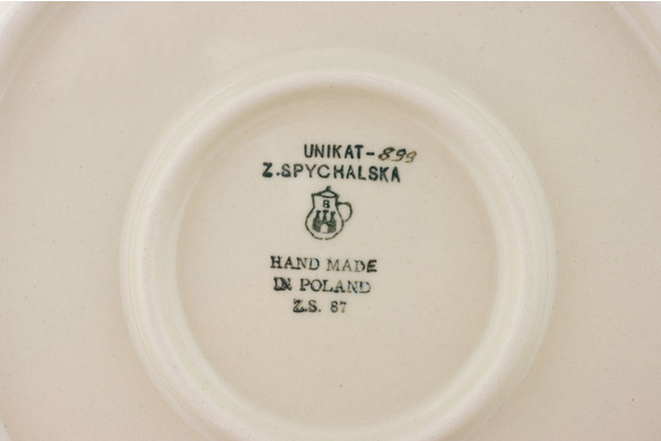 This is Polish Pottery Unikat (Signature) plate, which means that it has been hand painted with both sponges and brushes and it is signed by the artist who painted it. Unikat pieces are the most involving works of art. Larger Unikat items take a few hours of very careful work to finish.