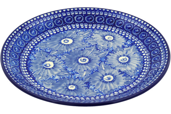 • Polish Pottery Plate 9" Blue Diamond Flowers